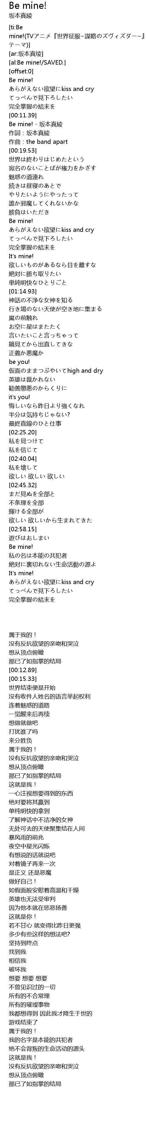 | [00:12.89] | Be mine! - 坂本真綾 |