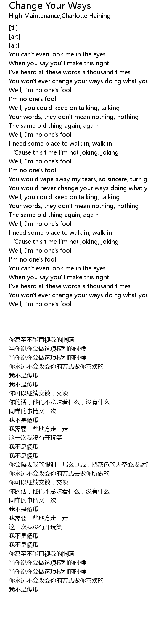 | [00:37.73] | You won' t ever change your ways doing what you like |