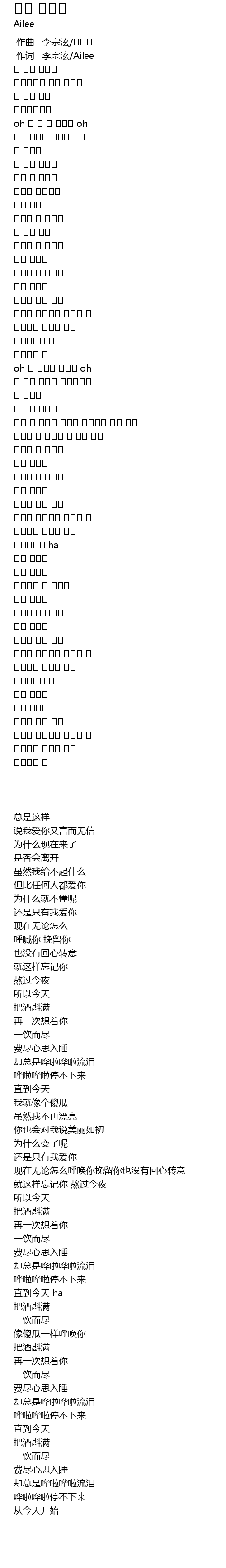| [00:01.00] | 作词 : 李宗泫/Ailee |
