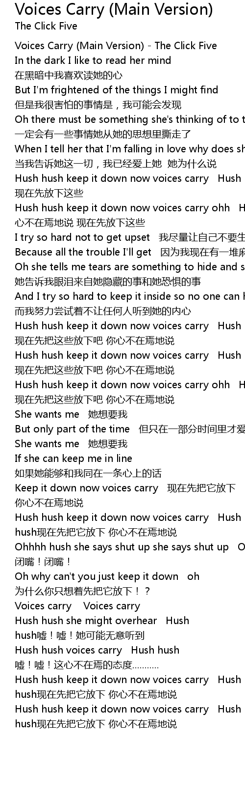 | [00:00.01] | Voices Carry Main Version The Click Five |