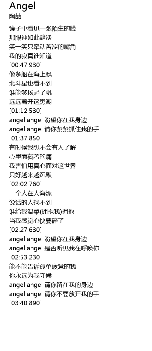 | [02:40.460] | angel angel 是否听见我在呼唤你 |