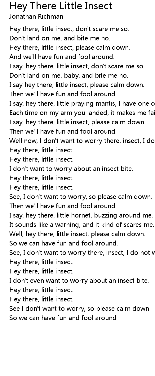 I say, hey there, little insect, don't scare me so. |