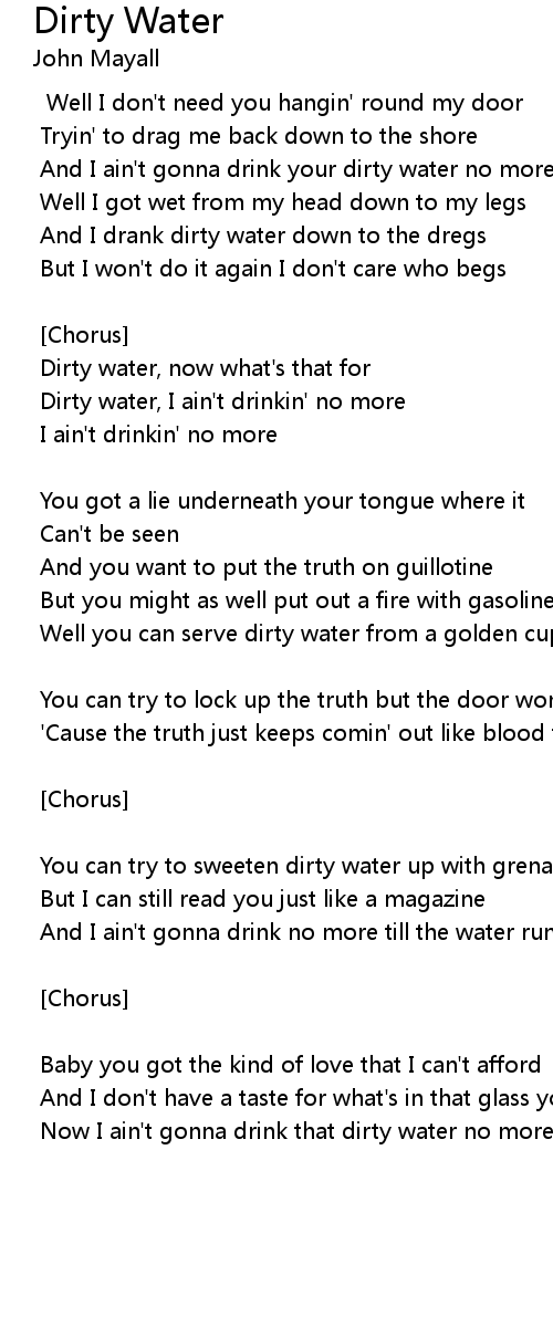Dirty water, I ain't drinkin' no more |