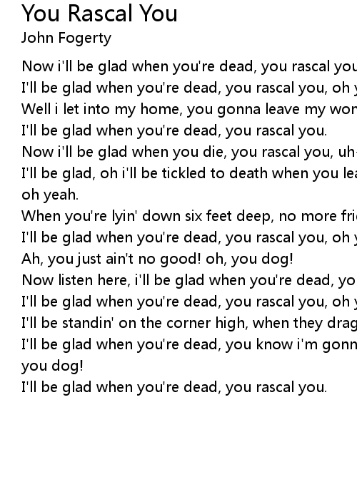 I'll be glad when you're dead, you rascal you, oh yeah. |