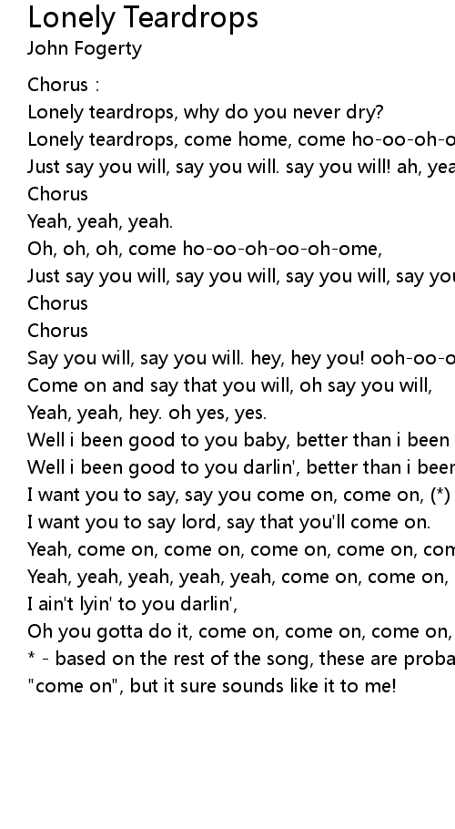 | Lonely teardrops, come home, come hoooohooohome, | |