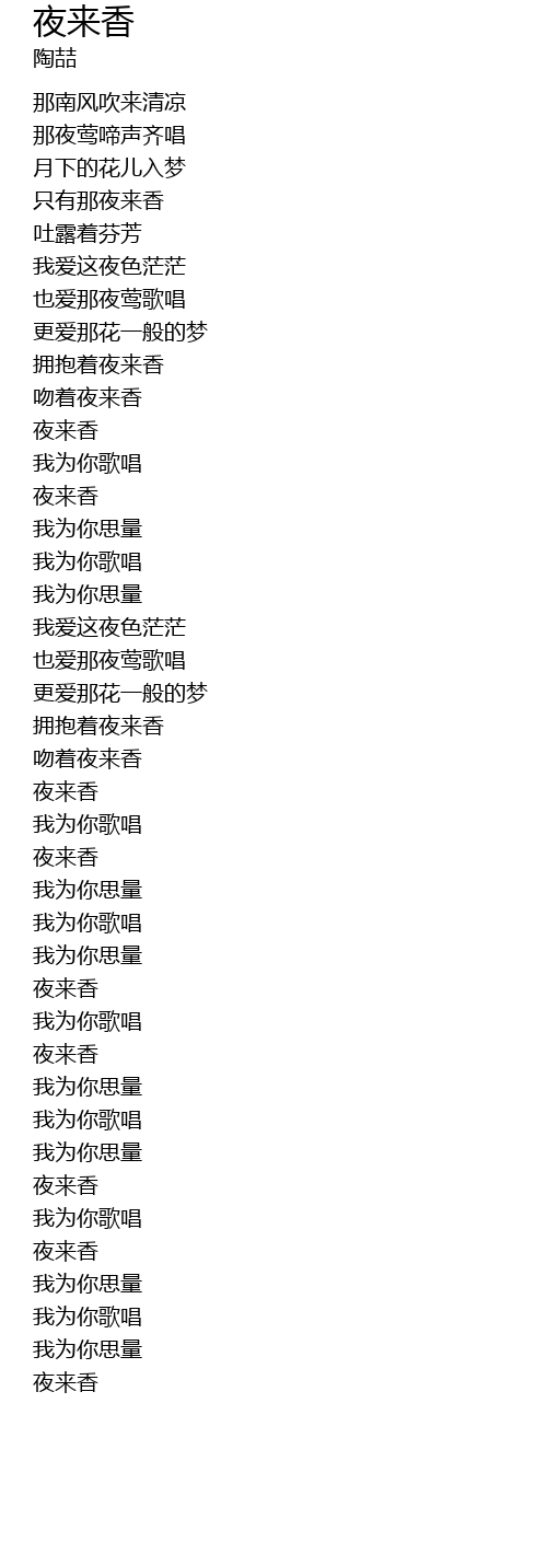 | [00:20.000] | zhǐ yǒu nà yè lái xiāng |