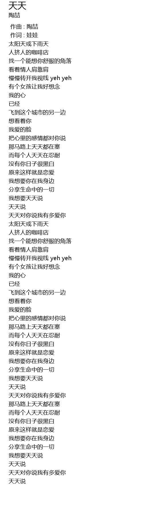 | [03:32.0] | 我想要天天说 |