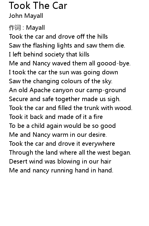 | Song | Took The Car |