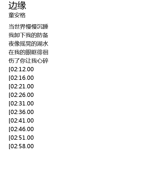 | [01:41.00][02:36.00][03:26.00] | dang ai qing zai zheng zha bian yuan |