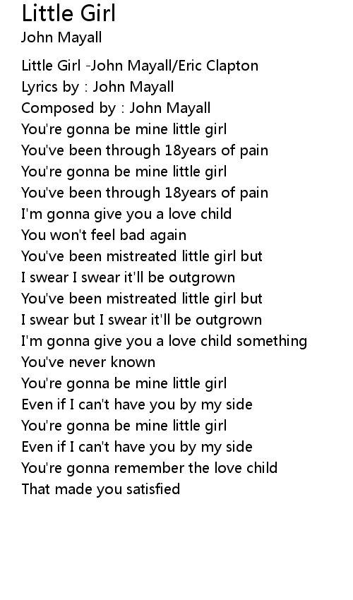 | [00:00.294] | Little Girl -John Mayall/Eric Clapton |