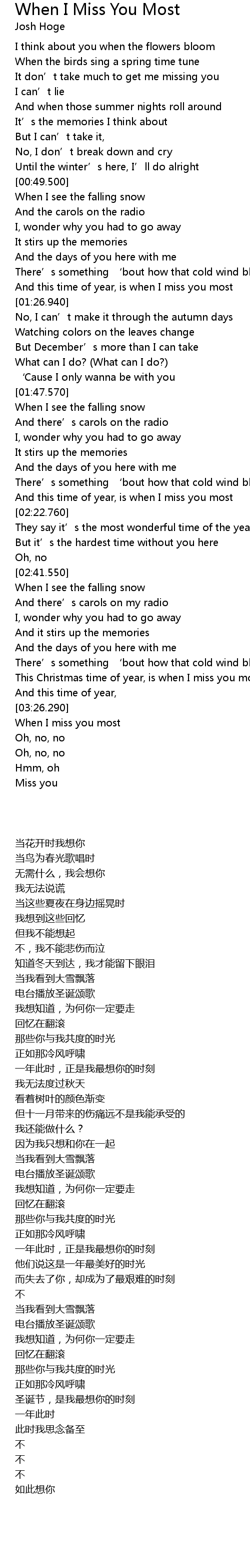 | [03:13.180] | This Christmas time of year, is when I miss you most |