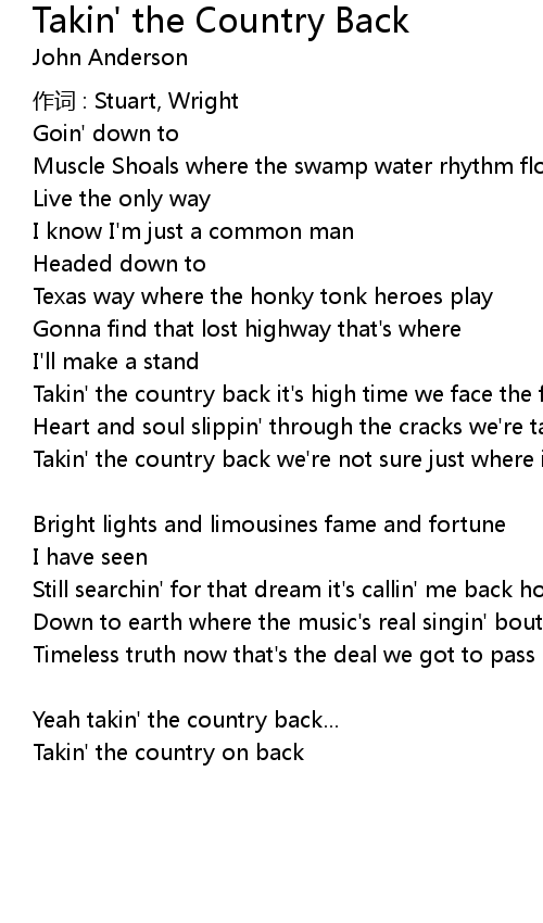 | Takin' the country back we're not sure just where it's at | |