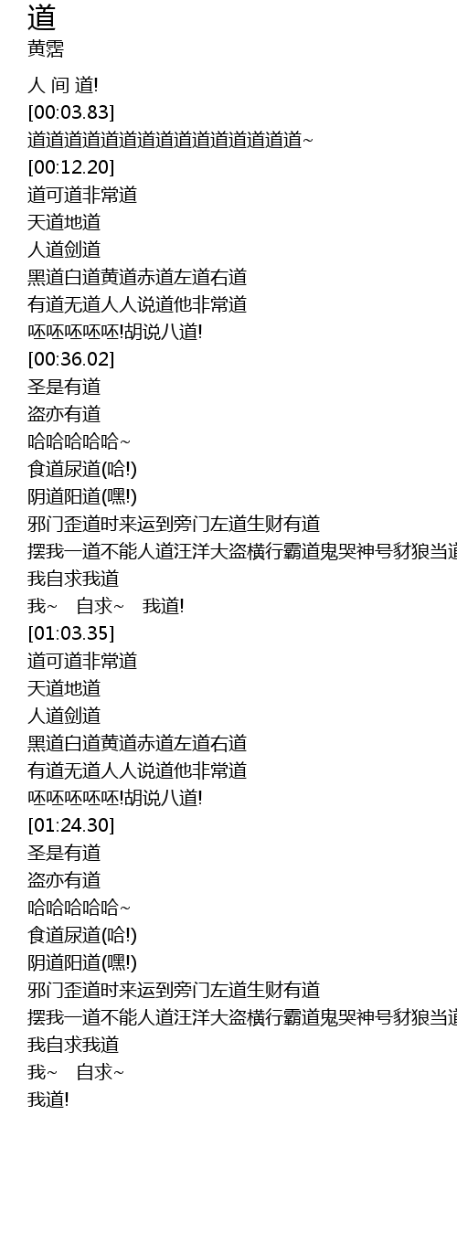 | [00:05.83] | 道道道道道道道道道道道道道道道~ |