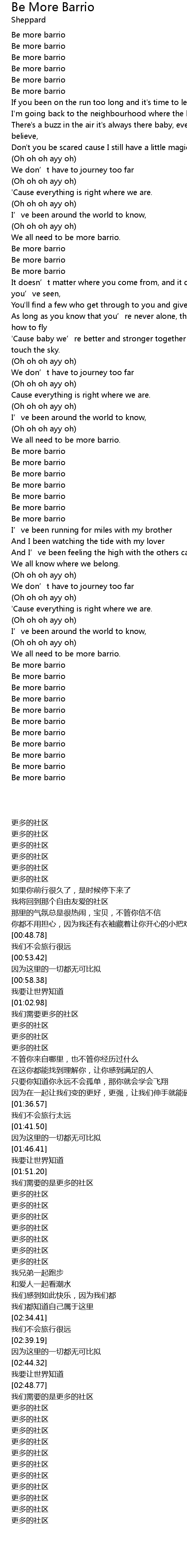 | [00:34.19] | I' m going back to the neighbourhood where the love is always free. |