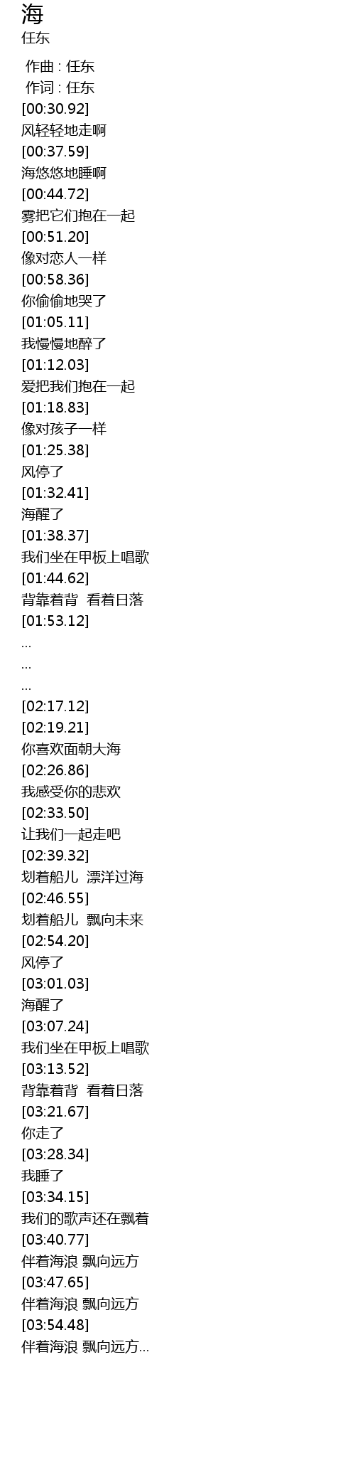 | [03:54.69] | 伴着海浪 飘向远方... |