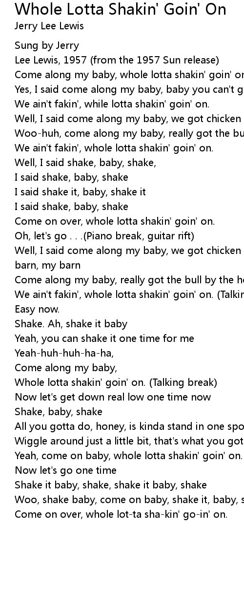 Yeah, come on baby, whole lotta shakin' goin' on. |