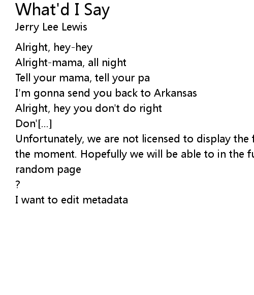 | Unfortunately, we are not licensed to display the full lyrics for this song at the moment. Hopefully we will be able to in the future. Until then, how about a | |