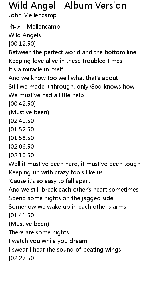 | [03:06.50][02:40.50][01:44.50][00:43.50] | Wild Angels, Wild Angels |