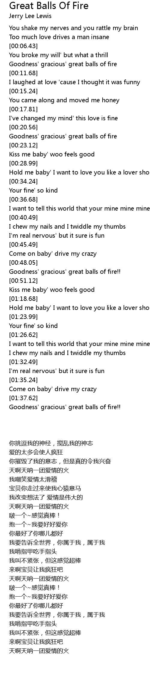 Goodness' gracious' great balls of fire |