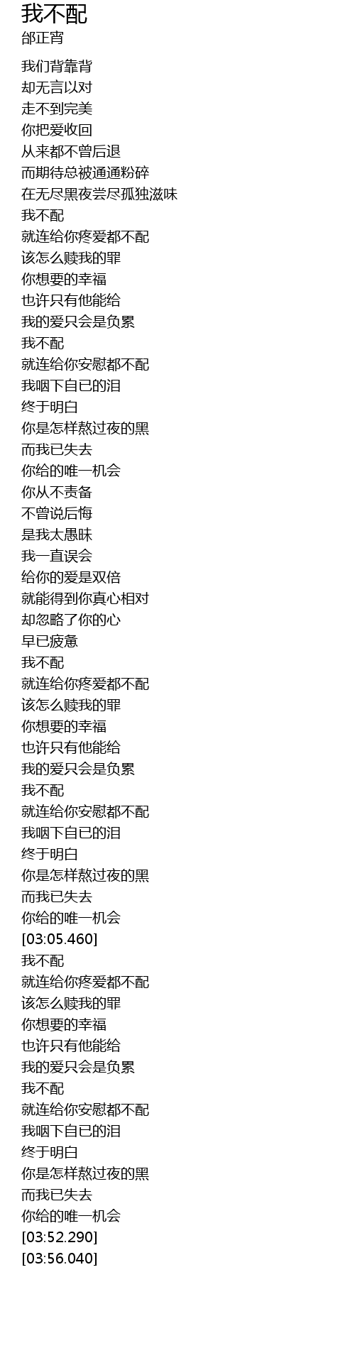 | [02:36.930] | jiù lián gěi nǐ ān wèi dōu bù pèi |