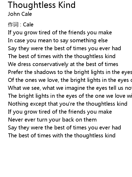| The best of times with the thoughtless kind |