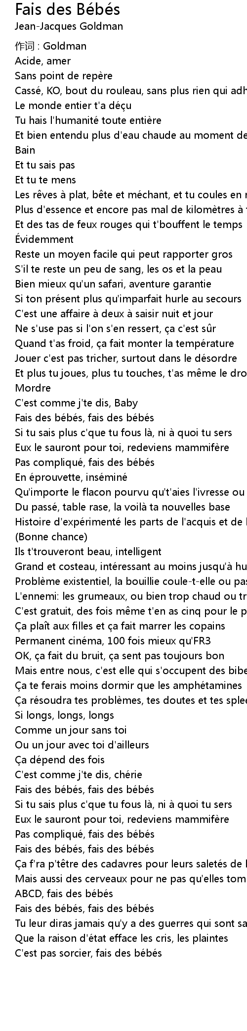 | Fais des be be s, fais des be be s | |