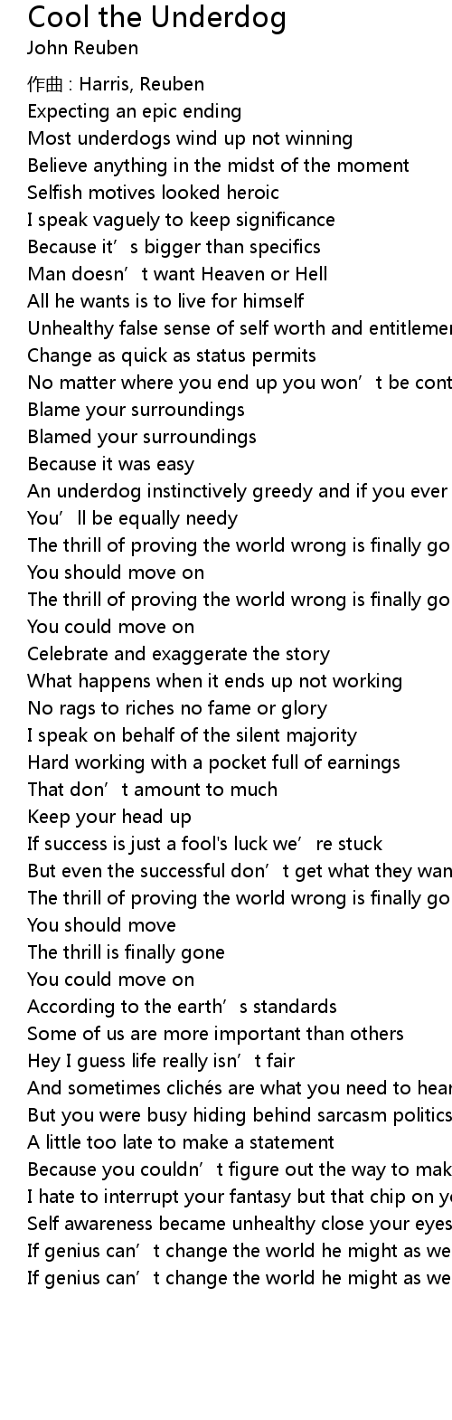 | Song | Cool the Underdog |