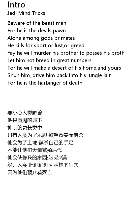 | [00:06.63] | Beware of the beast man |