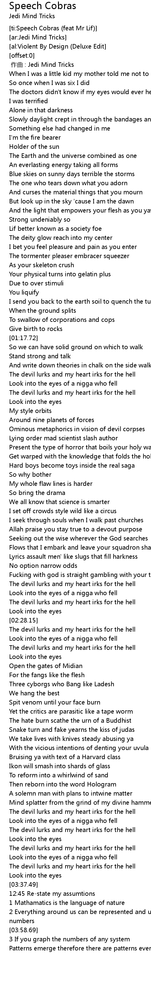 | [ti:Speech Cobras (feat Mr Lif)] | |