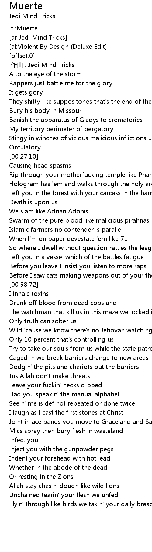 | [00:00.00] | 作曲 : Jedi Mind Tricks |