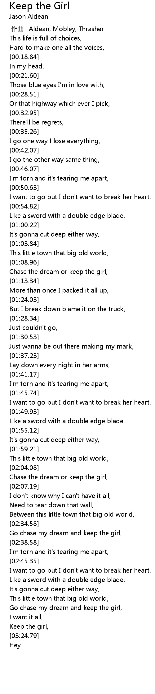 | [03:18.85] | Keep the girl, |