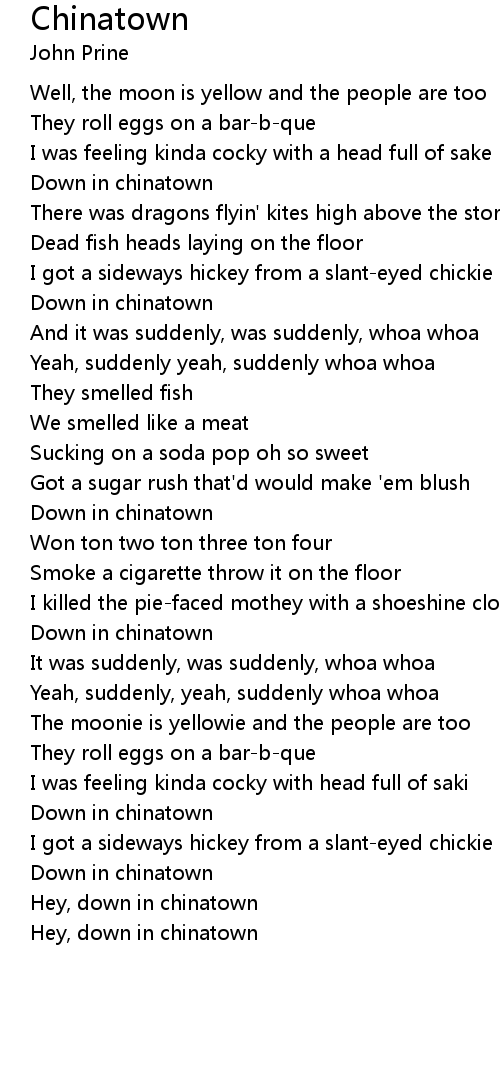 Hey, down in chinatown |
