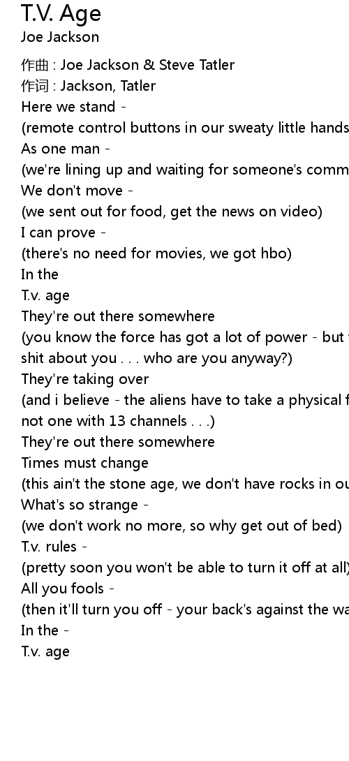 | 作曲 : Joe Jackson & Steve Tatler | |
