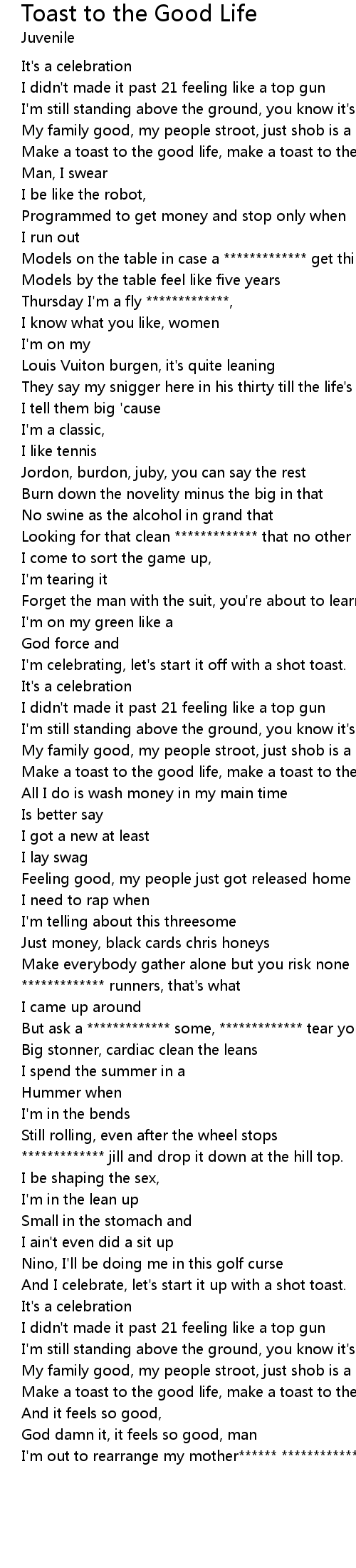 Make a toast to the good life, make a toast to the good life. (bis) |