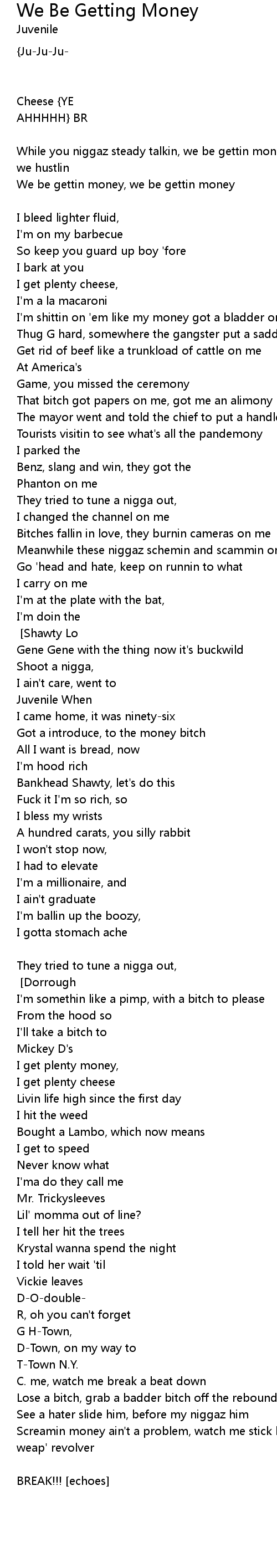 We be gettin money over you we gettin money [Juvenile] |