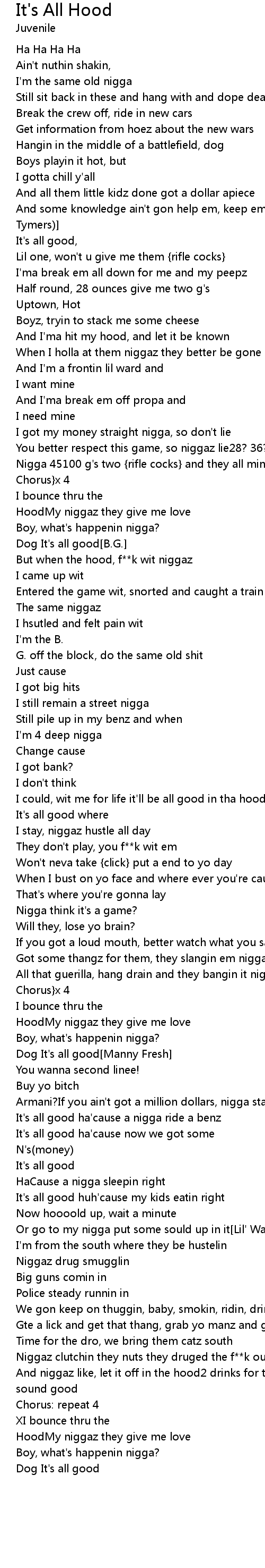 And niggaz like, let it off in the hood2 drinks for twenty, nigga don't that sound good |