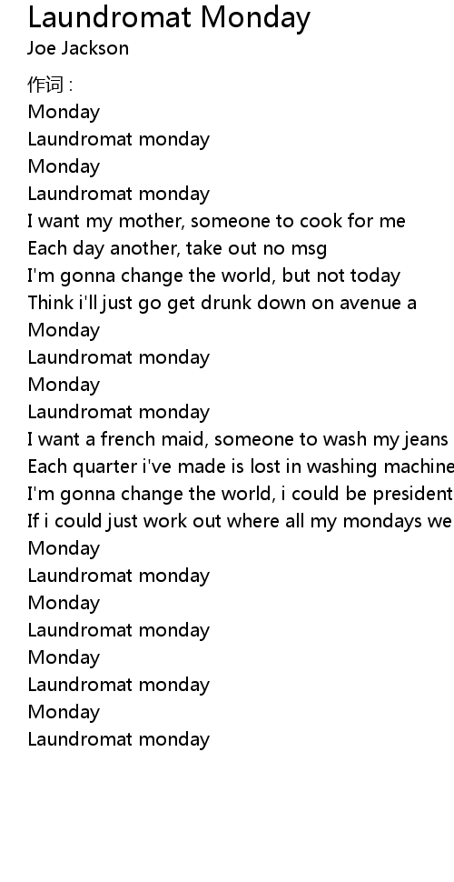 | Song | Laundromat Monday |