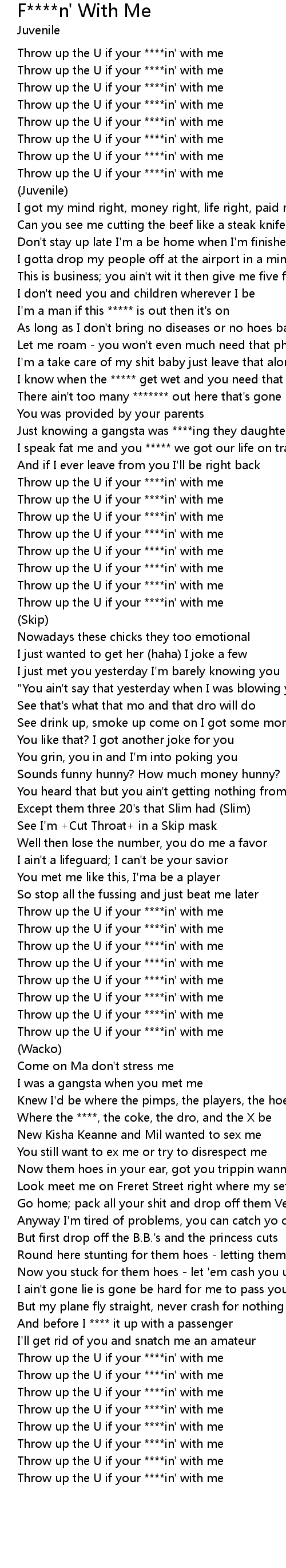Throw up the U if your ****in' with me |