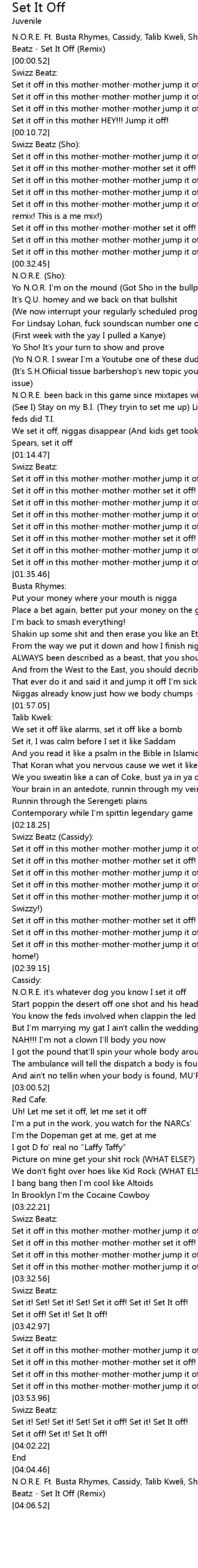 N.O.R.E. Ft. Busta Rhymes, Cassidy, Talib Kweli, Sho, Red Cafe & Swizz Beatz - Set It Off (Remix) |