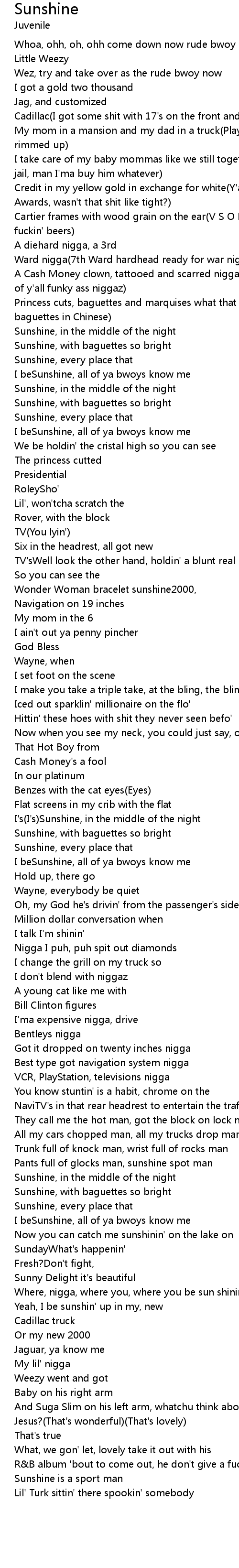 Where, nigga, where you, where you be sun shinin' at? |