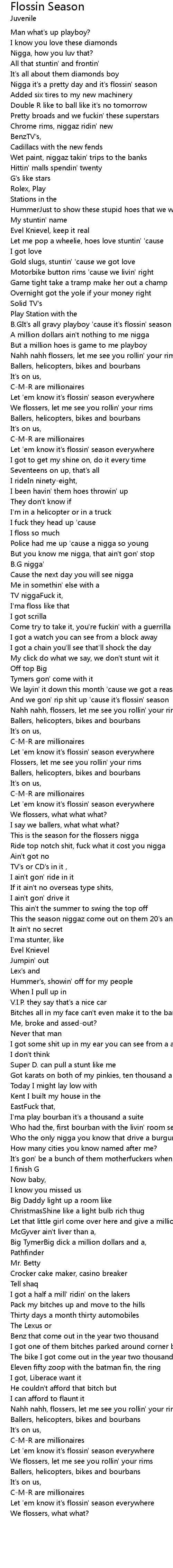Nigga it's a pretty day and it's flossin' season |