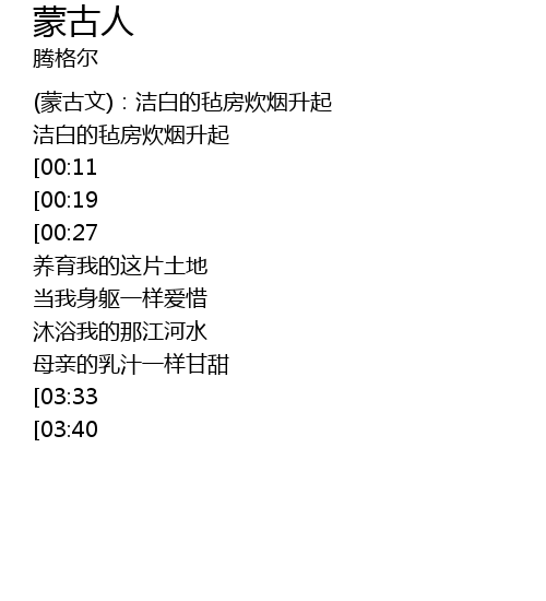 | [00:01] | (蒙古文):洁白的毡房炊烟升起 |