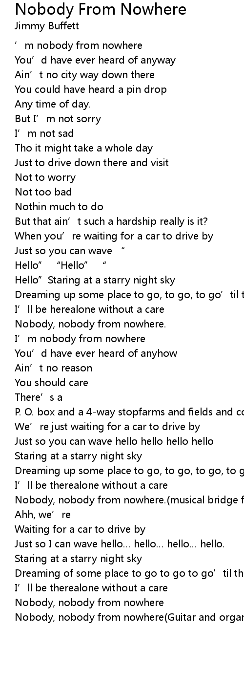 | Nobody, nobody from nowhere Guitar and organ featured at end also. |