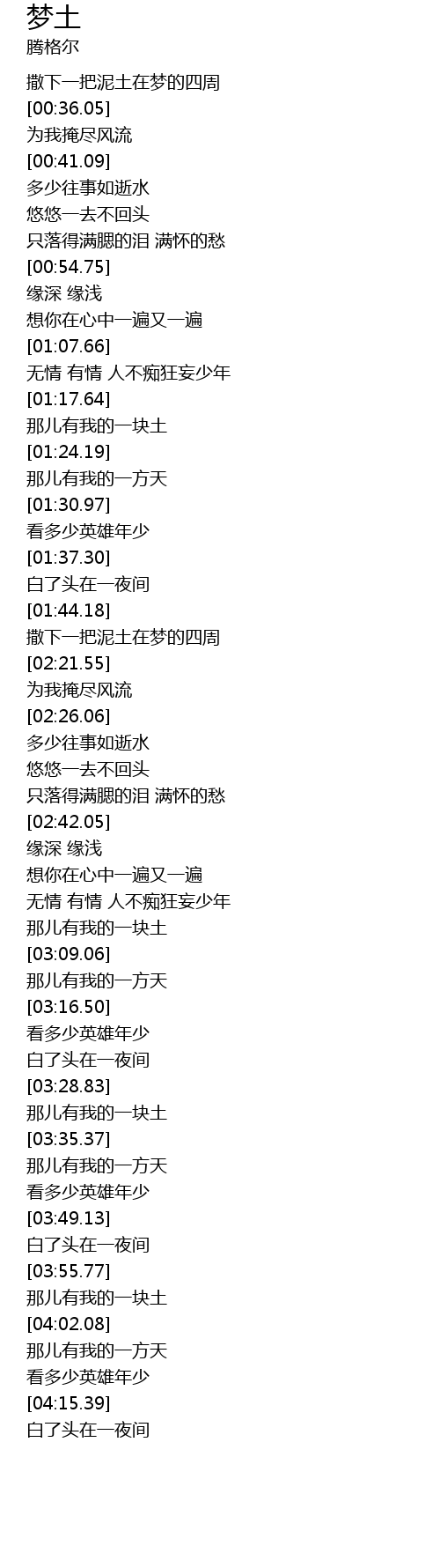 | [03:56.68] | 那儿有我的一块土 |