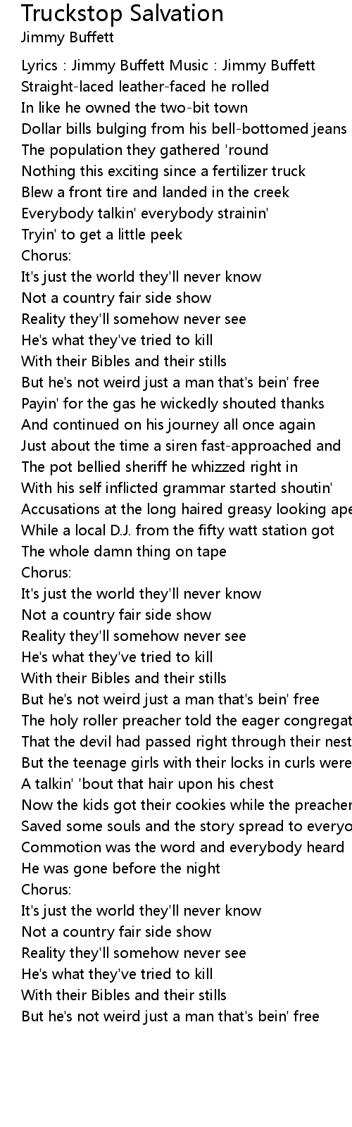 | Lyrics: Jimmy Buffett Music: Jimmy Buffett | |