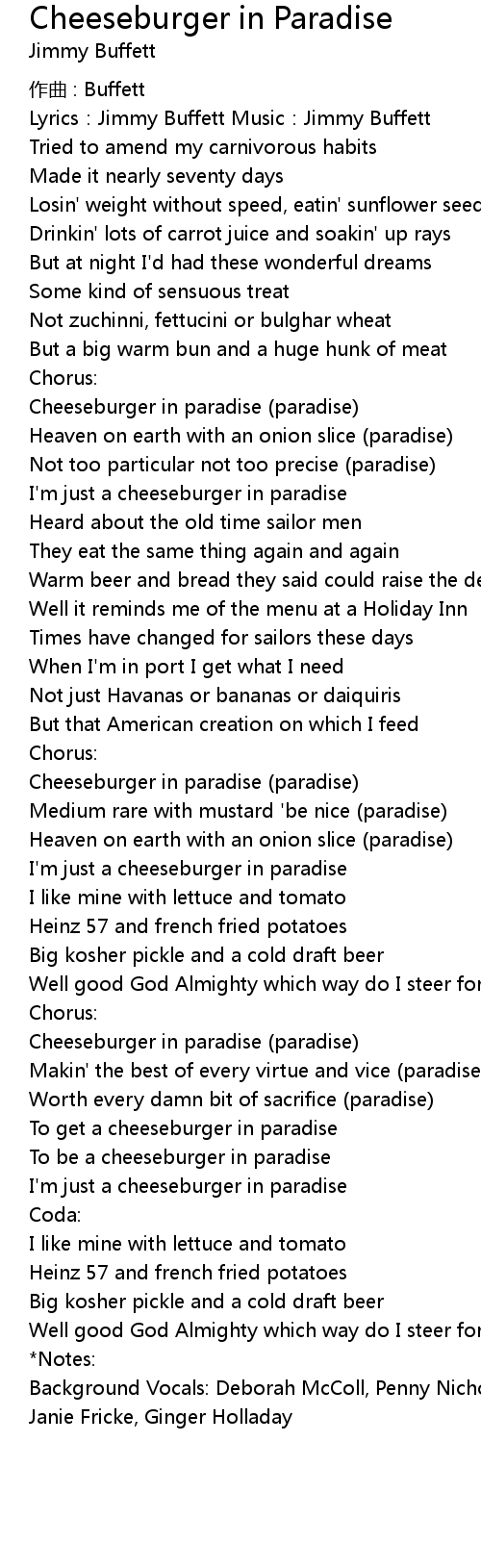 | Lyrics: Jimmy Buffett Music: Jimmy Buffett | |