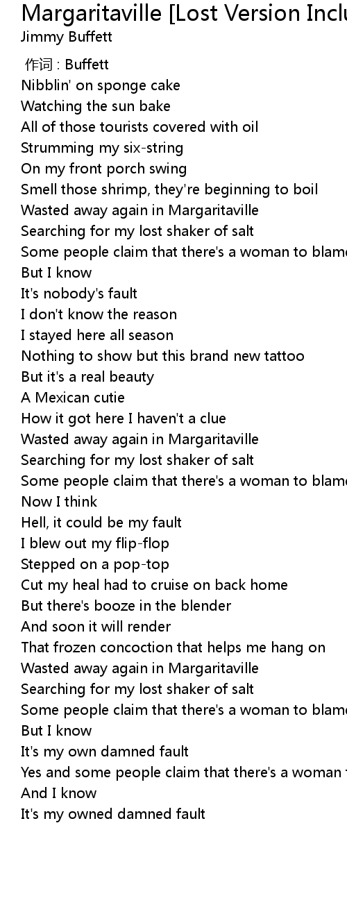 | [03:14.00] | Wasted away again in Margaritaville |