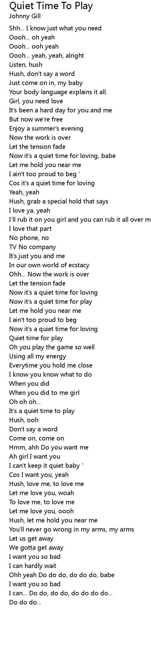 Cos it's a quiet time for loving |