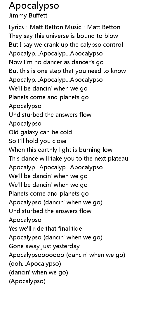 | Apocalypsooooooo dancin' when we go | |