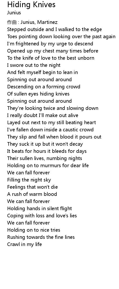 | Song | Hiding Knives |